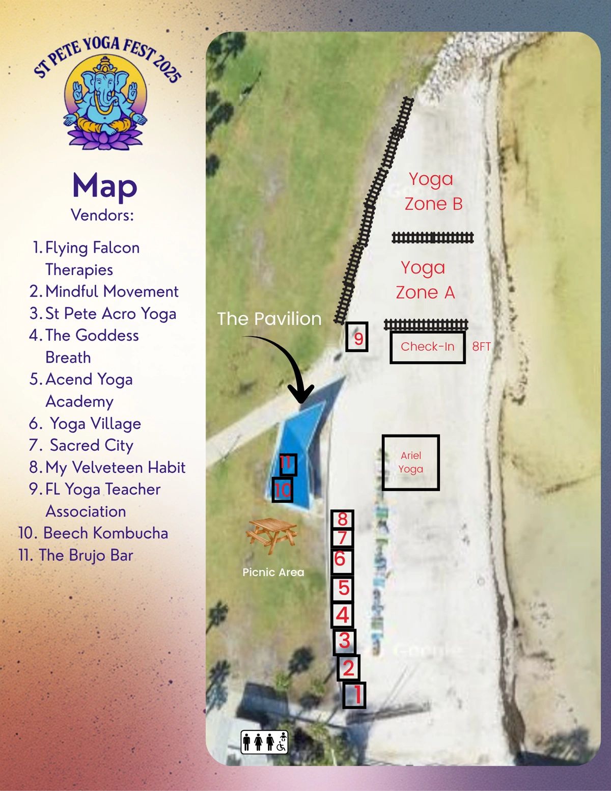 The central gathering spot! Visit vendors, enjoy music, and connect in the shade of Spa Beach